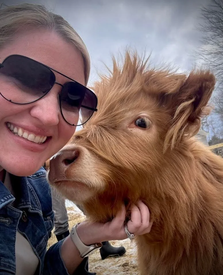 We also take our mini-Highland cows to nursing homes, where their gentle presence sparks joy, conversation, and connection. Watching residents light up is one of the most meaningful parts of what we do.